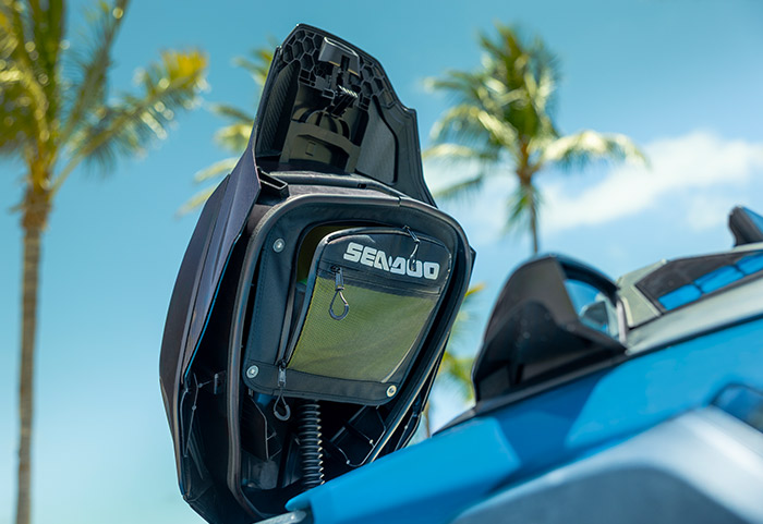 Conta ainda com display touchscreen de 10,25”, estabilizadores traseiros ajustáveis, sistema de freio e reverso (iBR) e sistema de áudio Premium BRP.